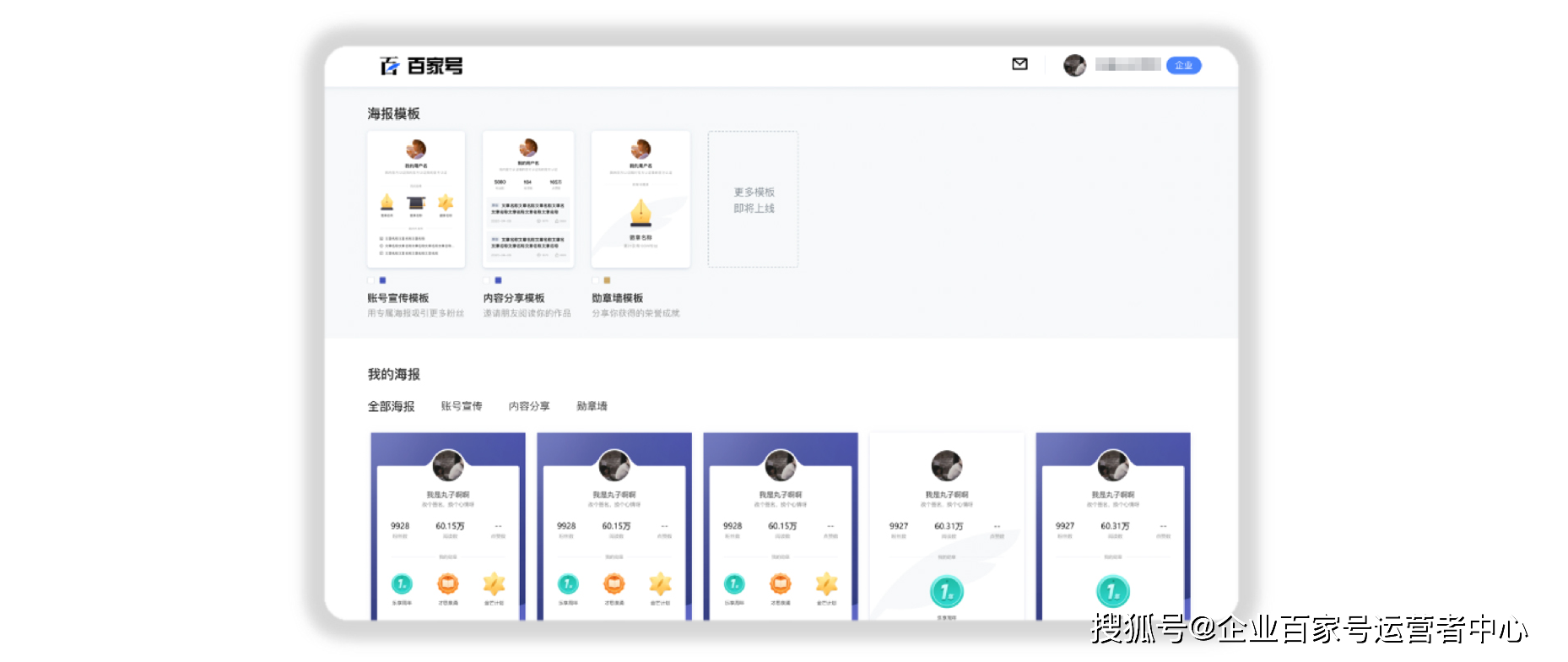 目前【海報功能】支持賬號宣傳、內(nèi)容分享,作者選擇組件后可以更換底色,并進行海報的拼接,分享到各個平臺,吸引外部用戶通過分享內(nèi)容關(guān)注百家號。