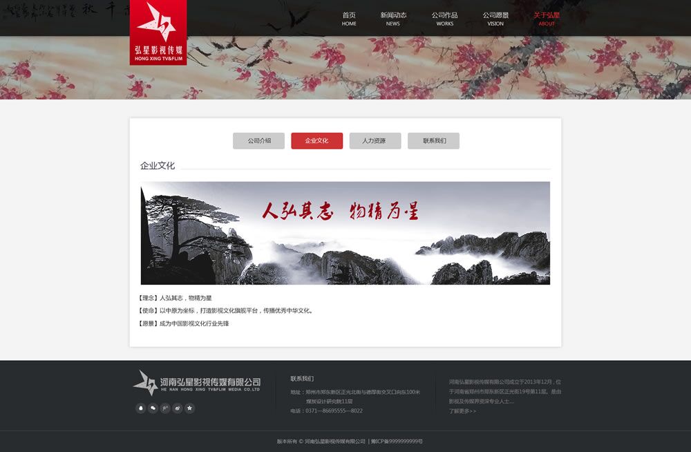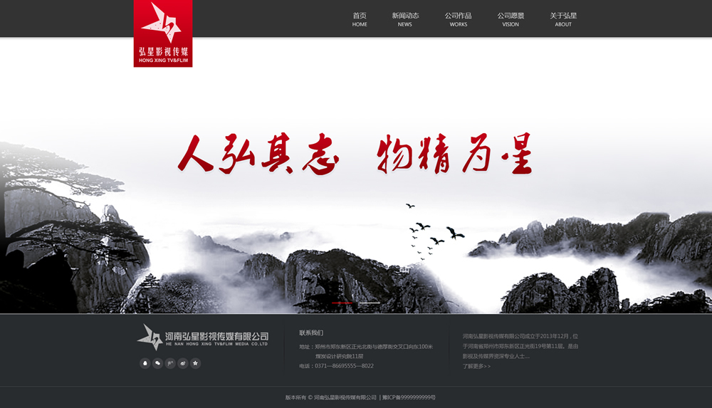 在這里給大家展示啟凡所制作弘星影視傳媒公司的案例: